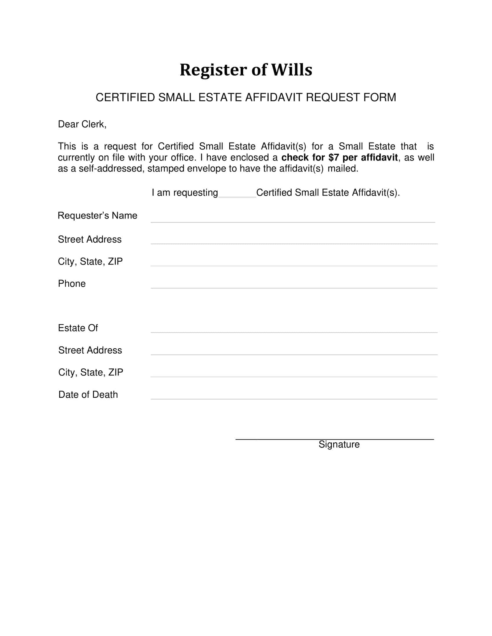 - Estate value declaration. This is a vouched affirmation that the total estate worth drops below the qualifying limit.